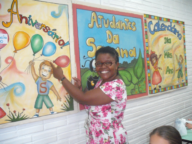 A sala de aula é um espaço de vários encontros. Neste espaço há criatividade, descobertas, brincadeiras, aprendizagens, novos conhecimentos. Neste sentido, é importante propiciar um ambiente acolhedor. Pensando nisto, os murais são peças importantes no encantamento do ambiente. Para atingir este objetivo solicitei a artista plástica hamburguense Raquel da Silva, que realizasse os nossos murais. Eles ficaram belíssimos. A turma adorou o resultado do trabalho. Contatos com Raquel, pelo telefone (51) 3582.59.04.
